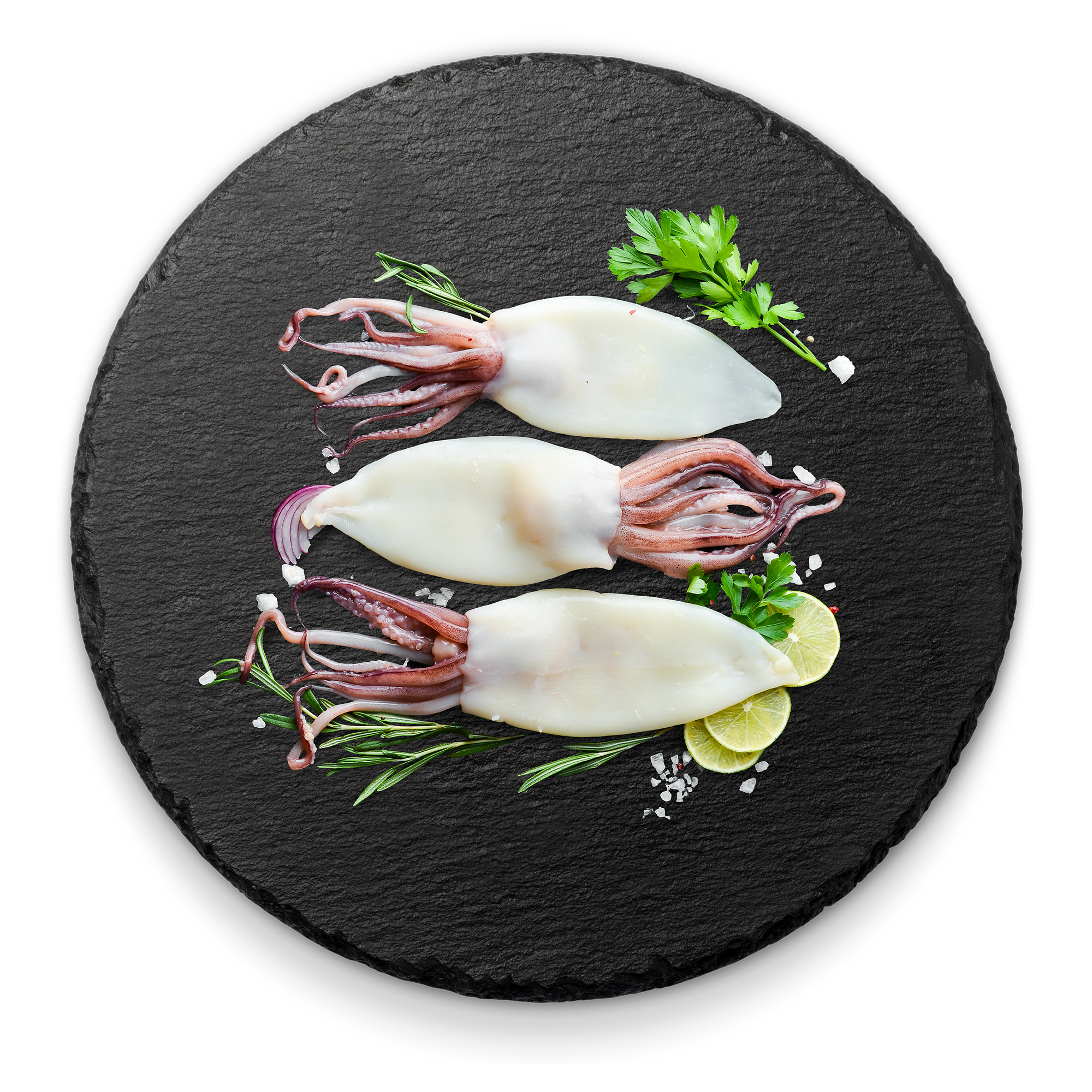 Mittelgroße Tintenfische, bereits aufgetaut und bereit für die Weiterverarbeitung. Zart im Biss und vielseitig einsetzbar – ob gefüllt, in Ringen frittiert, in der Pfanne geschwenkt oder als Teil eines Fritto misto.